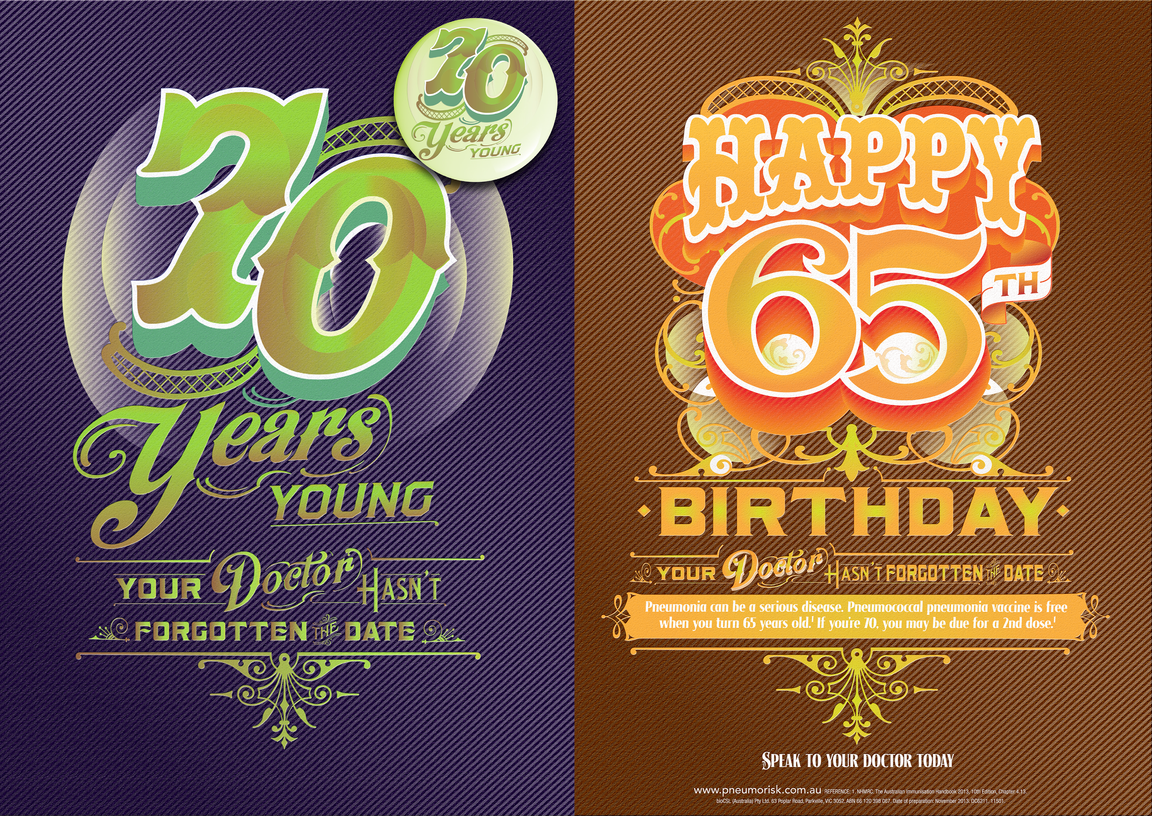 Highly targeted communications focused on two key age milestones for pneumococcal pneumonia immunisation. The aim was to encourage every person turning 65 or 70 to ask about pneumonia vaccination when they visited the surgery for their free flu vaccine.
